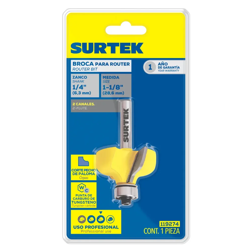 Sé el primero en valorar “Broca para router de acero pecho de paloma con balero 1-1/8″ zanco de 1/4″”