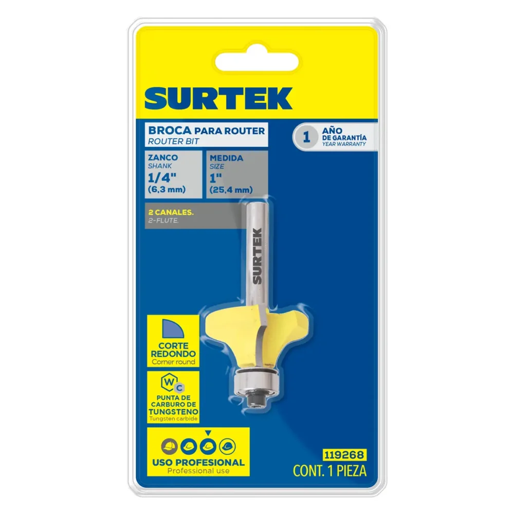 Broca para router de acero redondeadora con balero 1″ zanco de 1/4″