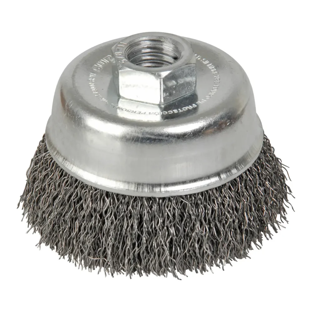 Carda copa ondulada alambre delgado 5″ x 0.35 mm con rosca 5/8″