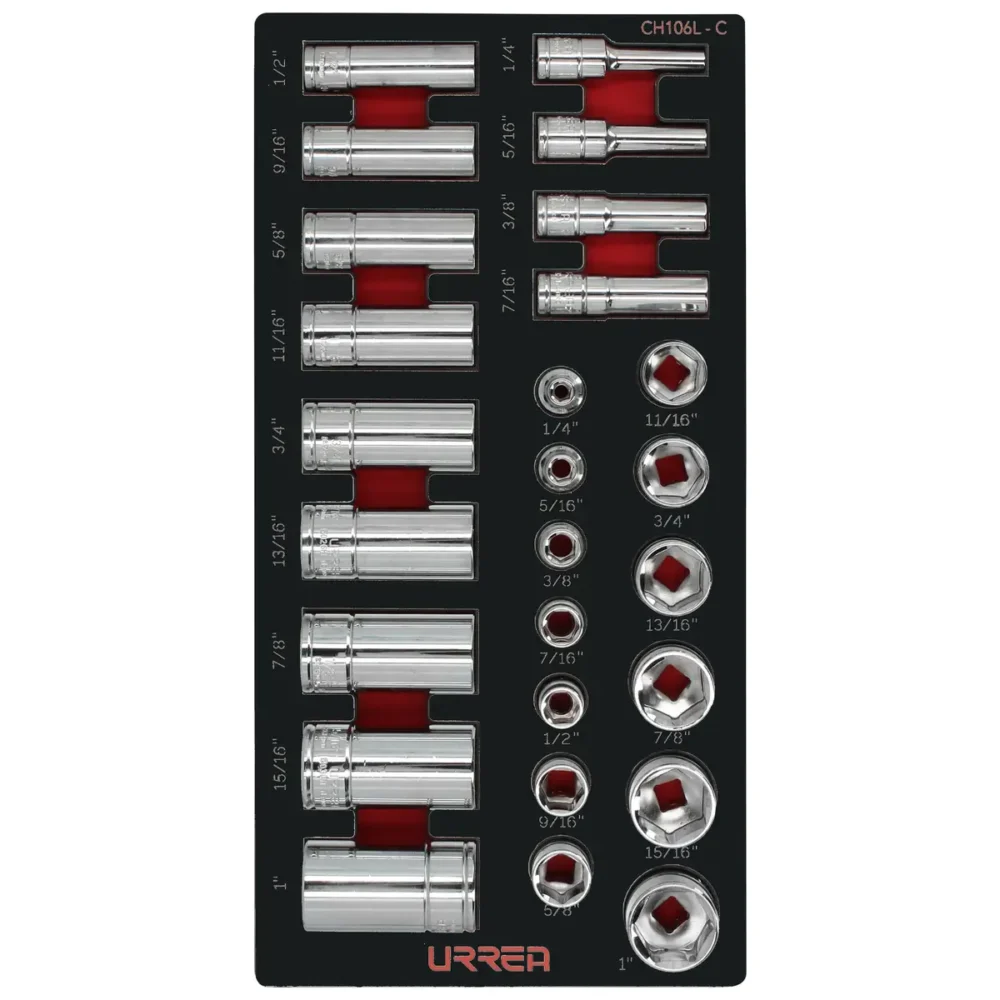 Juego de dados cortos y largos cuadro de 3/8″ en pulgadas 26 piezas, CH106-C