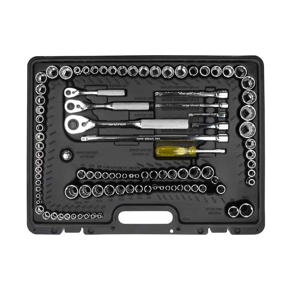Juego de dados y accesorios cuadro de 1/4″, 3/8″ y 1/2″ combinado, 99 piezas