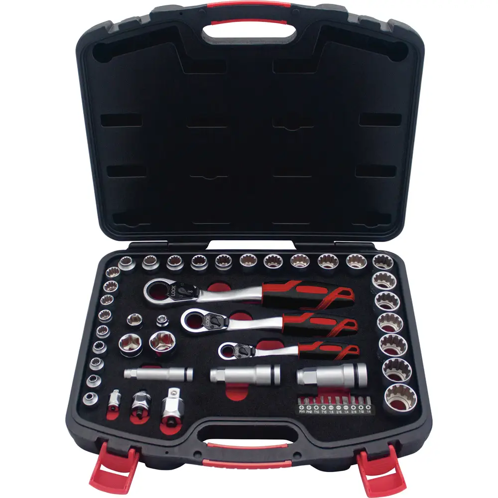 Juego de dados y accesorios cuadro de 1/4″, 3/8″ y 1/2″ Go-Through combinado, 49 piezas