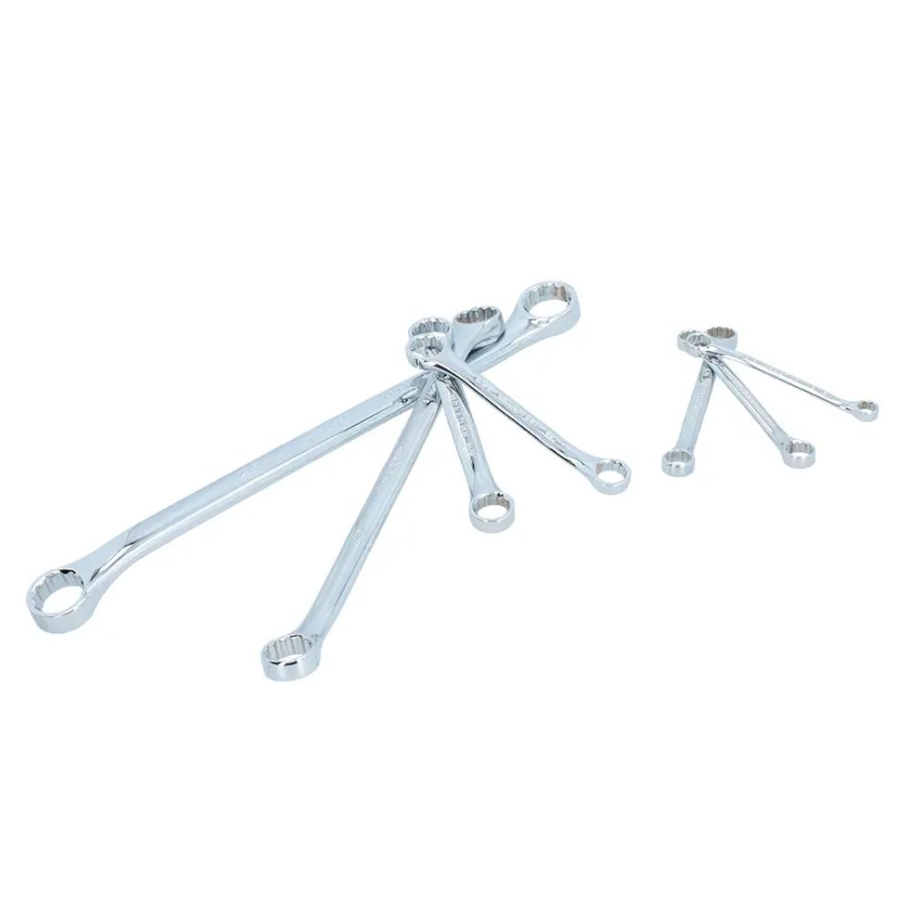 Juego de llaves de estrías pulido espejo de 15° en pulgadas, 12 puntas, 7 pz en rack