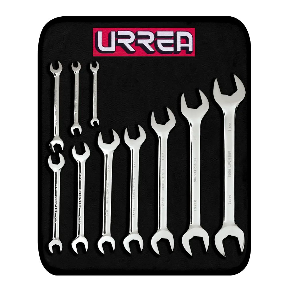 Juego de llaves españolas pulido espejo en pulgadas, 10 piezas, en estuche