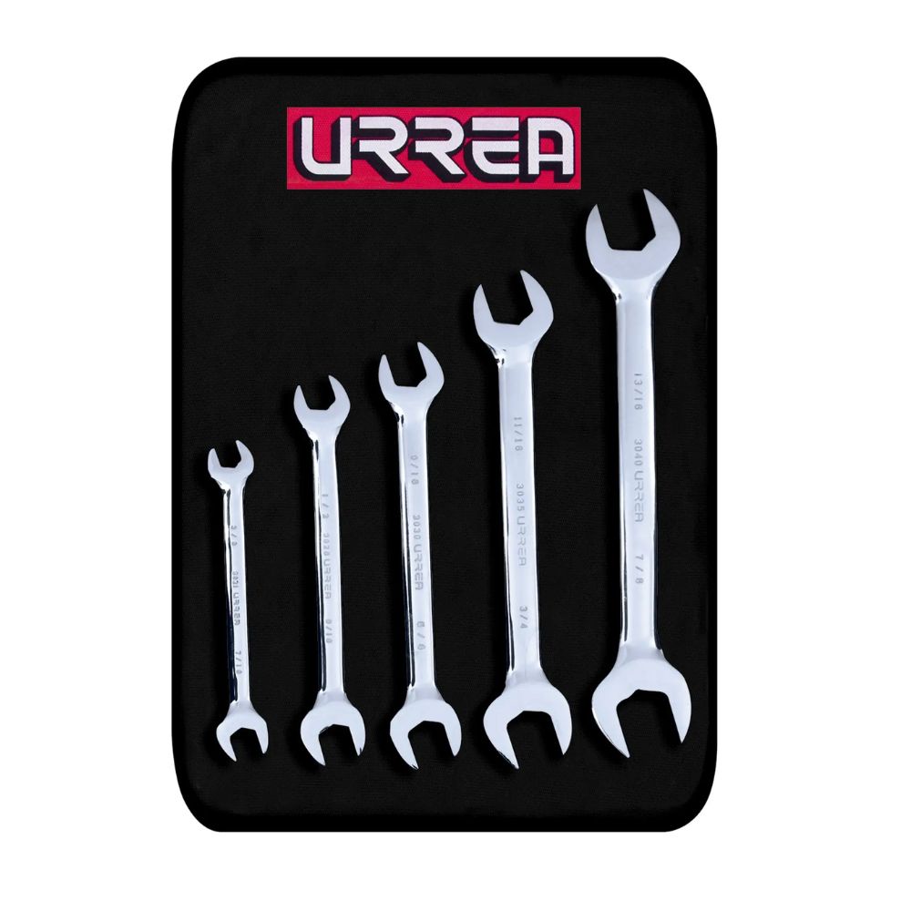 Juego de llaves españolas pulido espejo en pulgadas, 5 piezas en estuche