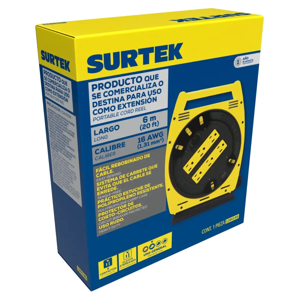 Multicontacto 6 entradas tipo carrete con extensión eléctrica 6 m