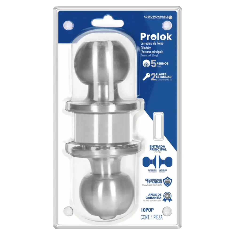 Pomo cilíndrico bola función entrada, acero inoxidable, llave estándar, blíster