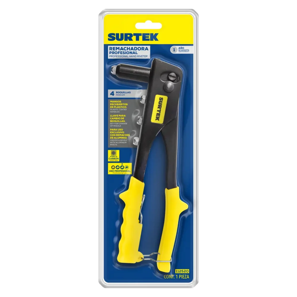 Remachadora manual de nariz larga con 4 boquillas, 10″